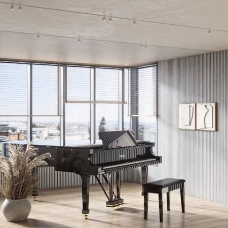 Акустические панели Cosca decor – это уникальный по функционалу декоративно-отделочный материал для внутренней отделки стен: - акустический комфорт в помещении без эха и шума снаружи; - современный скандинавский дизайн; - легкий монтаж своими руками даже поверх старых обоев. Основа панелей – акустический войлок 9мм. Изготовлен из экологичного волокна, устойчив к влаге, долговечен, воздухопроницаем, преломляет и подавляет звуковые волны. Декор панелей – рейки из мебельного МДФ, облицованные экошпоном: устойчивы к деформации, создают визуальный и тактильный эффект комфорта.